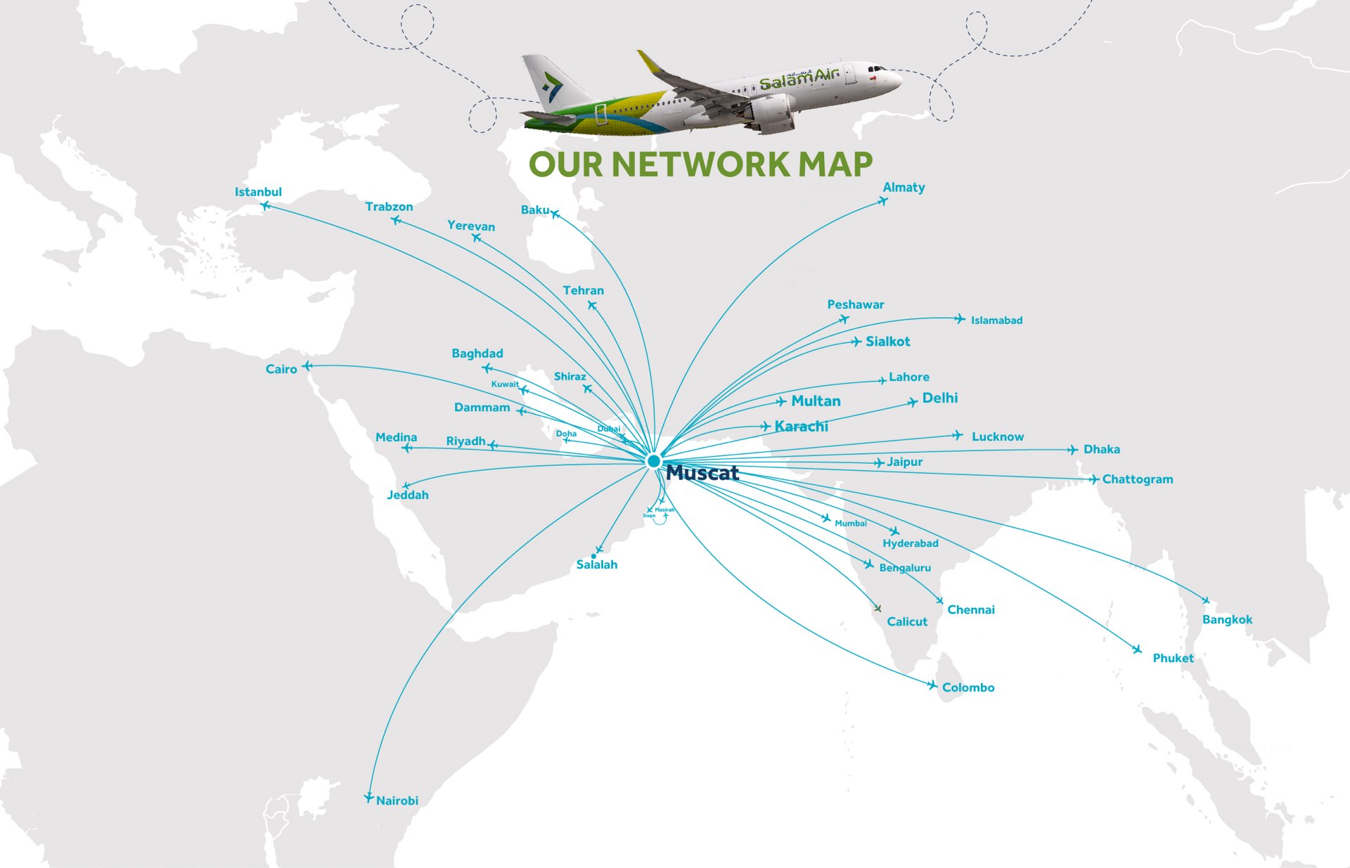 SalamAir, 2017 yılında faaliyete başladığından bu yana, havacılık sektöründe hızla güvenilir bir isim haline gelmiştir. Bugün, Airbus A320neo ve A321neo modelleri de dahil olmak üzere 14 uçaktan oluşan modern bir filo işletmekte ve Sultanlık içindeki altı önemli iç hat rotası da dahil olmak üzere 20 ülkede 43'ün üzerinde destinasyona hizmet vermektedir.