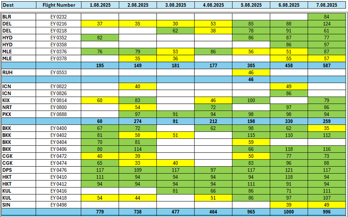 Ethiad Kargo 1 AGUSTOS-7 AGUSTOS müsatlik bilgisini sizlerle paylaşmak isteriz.