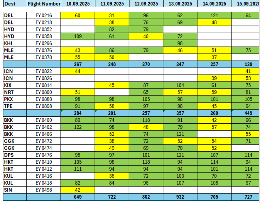 Ethiad Kargo 10 EYLUL-15 EYLUL müsatlik bilgisini sizlerle paylaşmak isteriz.